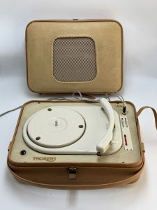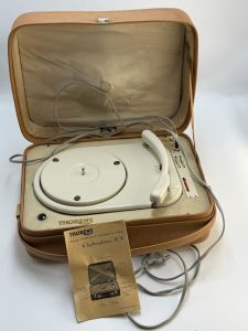 Gira-discos portátil Thorens Electrophone 805, original dos anos 60, em bom estado geral de conservação.