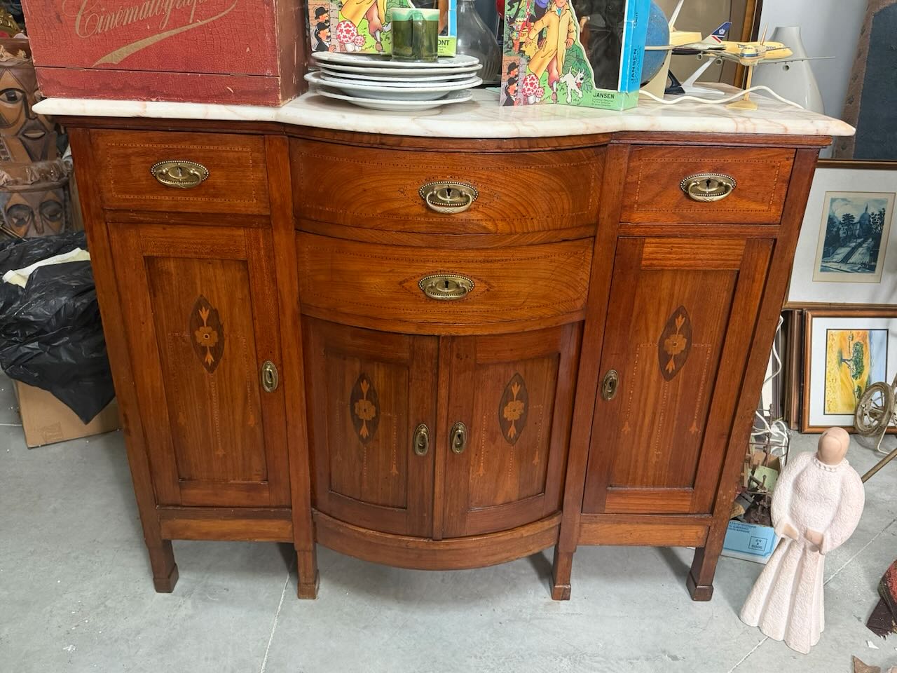Cómoda estilo D. Maria, com aplicações embutidas e tampo em mármore original. Primeira metade século XX. Madeira nobre, ferragens originais e excelente acabamento. Restaurada, sem defeitos, pronta a usar. Peça elegante e intemporal, ideal para sala, hall ou quarto. Dimensões: 98 cm altura X 1,25 cm de comprimento X 60 cm profundidade. Vendo: 280€