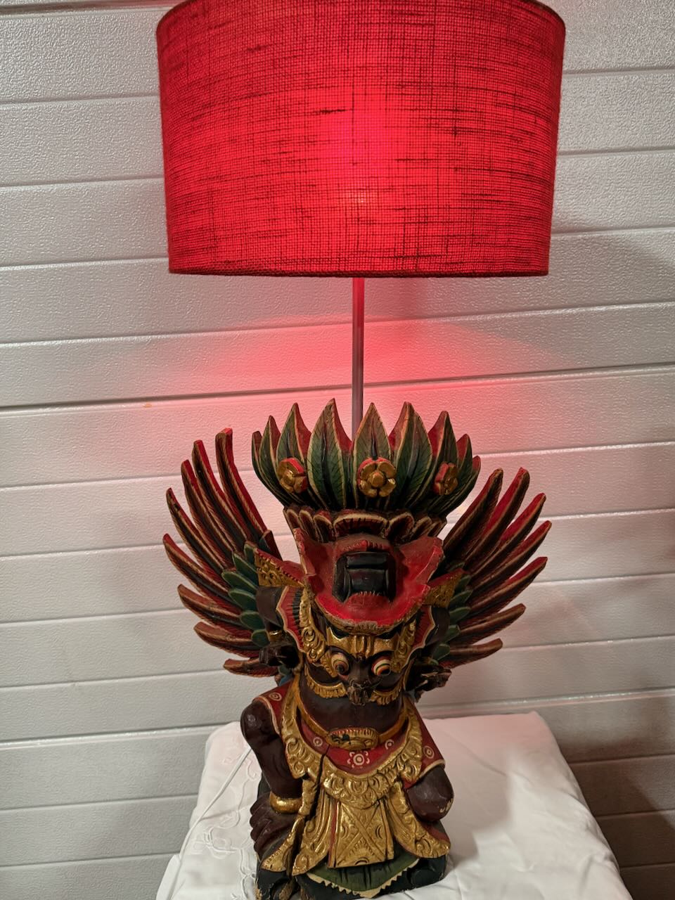 Escultura Garuda em madeira policromada — início do século XX — transformada em candeeiro
